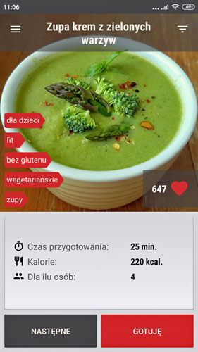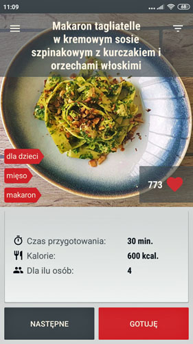 Znajdziesz tu ogromną i ciągle aktualizowaną bazę przepisów uszeregowanych w precyzyjnie dobrane kategorie (np. Fit, Dla dzieci, Bez glutenu). Każdy przepis został szczegółowo i przejrzyście opisany oraz opatrzony atrakcyjnymi zdjęciami, wygodną listą zakupów oraz poradami dotyczącymi przygotowania dań. Są tu także informacje dotyczące czasu przygotowania oraz wartości energetycznej dań. Wszystkie przepisy zostały wielokrotnie sprawdzone i przetestowane, opierają się o łatwo dostępne składniki, każdy znajdzie tutaj danie dla siebie, które bez problemu będzie mógł przygotować samodzielnie we własnej kuchni.