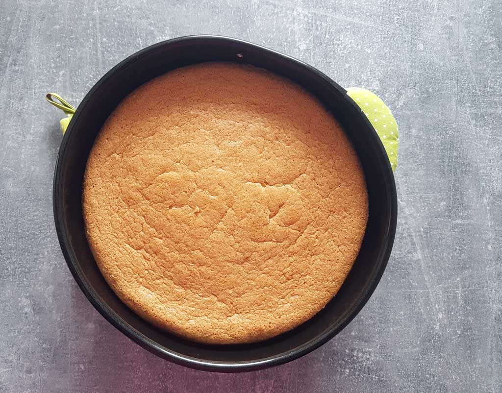 • Po wyjęciu z piekarnika, upuścić foremkę na blat kuchenny z wysokości 20 cm, ma to zapobiec opadnięciu biszkoptu.