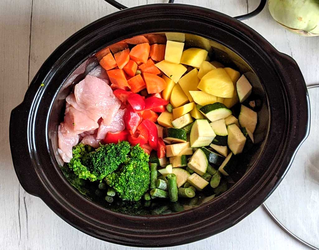 - napełnioną misę włóż do wolnowaru, przykryj pokrywką i ustaw gotowanie w pozycji LOW